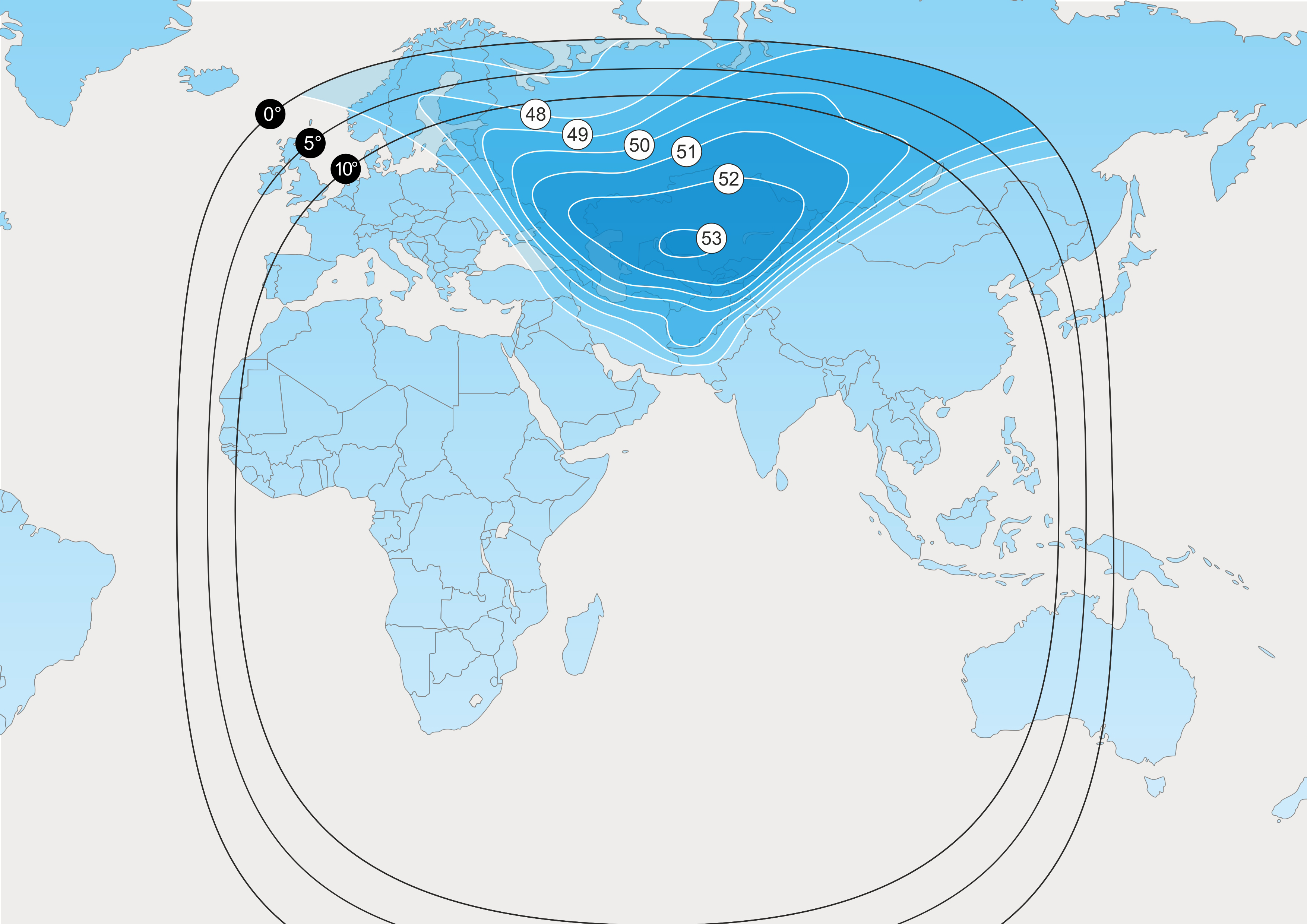 Страны охвата: Узбекистан, Казахстан, Туркменистан, Таджикистан, Киргизстан, Россия, Пакистан, часть Турции, Болгария, Румыния, Молдова, часть Украины, Грузия, Азербайджан, часть Ирана, Афганистан, часть Белорусии, часть Финляндии, часть Норвегии, часть Швеции, часть Китая, часть Монголии, Эстония, Латвия
